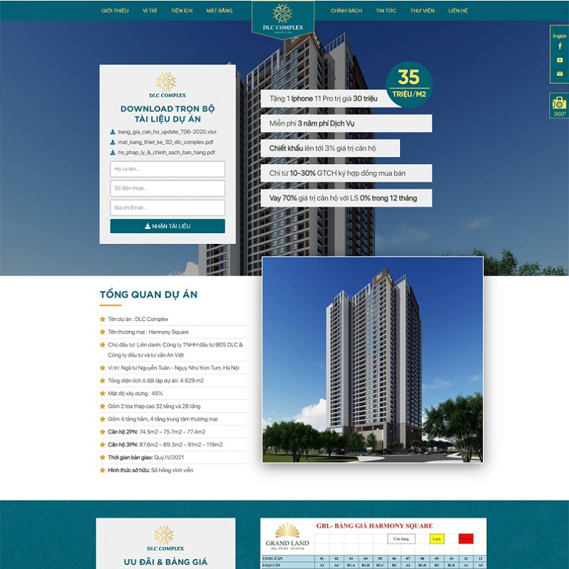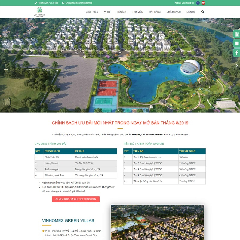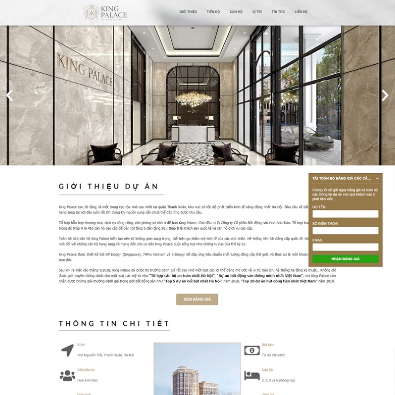 1. Website về Dự án bất động sản : Website giới thiệu về 1 dự án bất động sản (Hay được gọi là Landing page) cho phép doanh nghiệp hay cá nhân giới thiệu về một dự án mà doanh nghiệp hay cá nhân đang bán về dự án đó. Thường thì website giới thiệu về dự án bất động sản sẽ được trình bày dưới dạng một Landingpage (Là 1 trang đơn với đầy đủ thông tin) đơn giản nhưng sẽ rất chú trọng vào các yếu tố hình ảnh, nội dung ngắn gọn và đầy đủ.